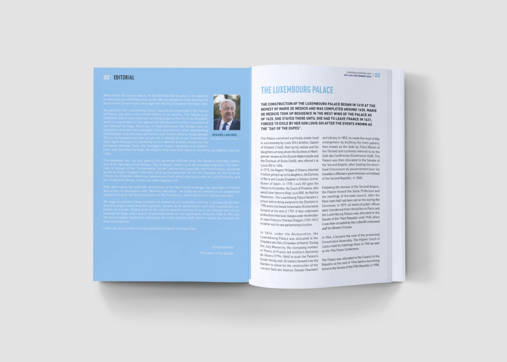 Le studio réalise chaque année la brochure accompagnant la visite du Sénat lors des journées européenne du patrimoine.